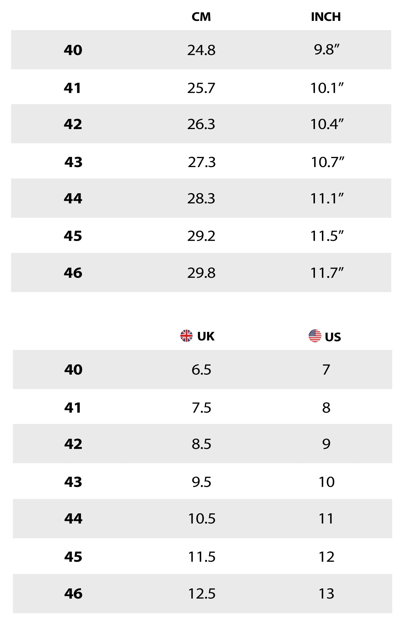Este guia de tamanhos é para todo o calçado de homem, incluindo sapatilhas e chinelos de praia e alpercatas